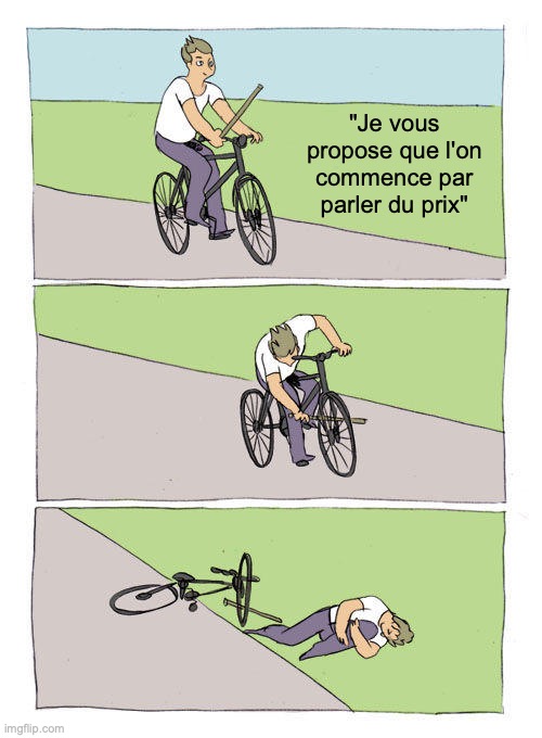 Un Ă©change ne devrait jamais tourner trop longtemps autour du prix ou dâune autre objection technique ou administrative.